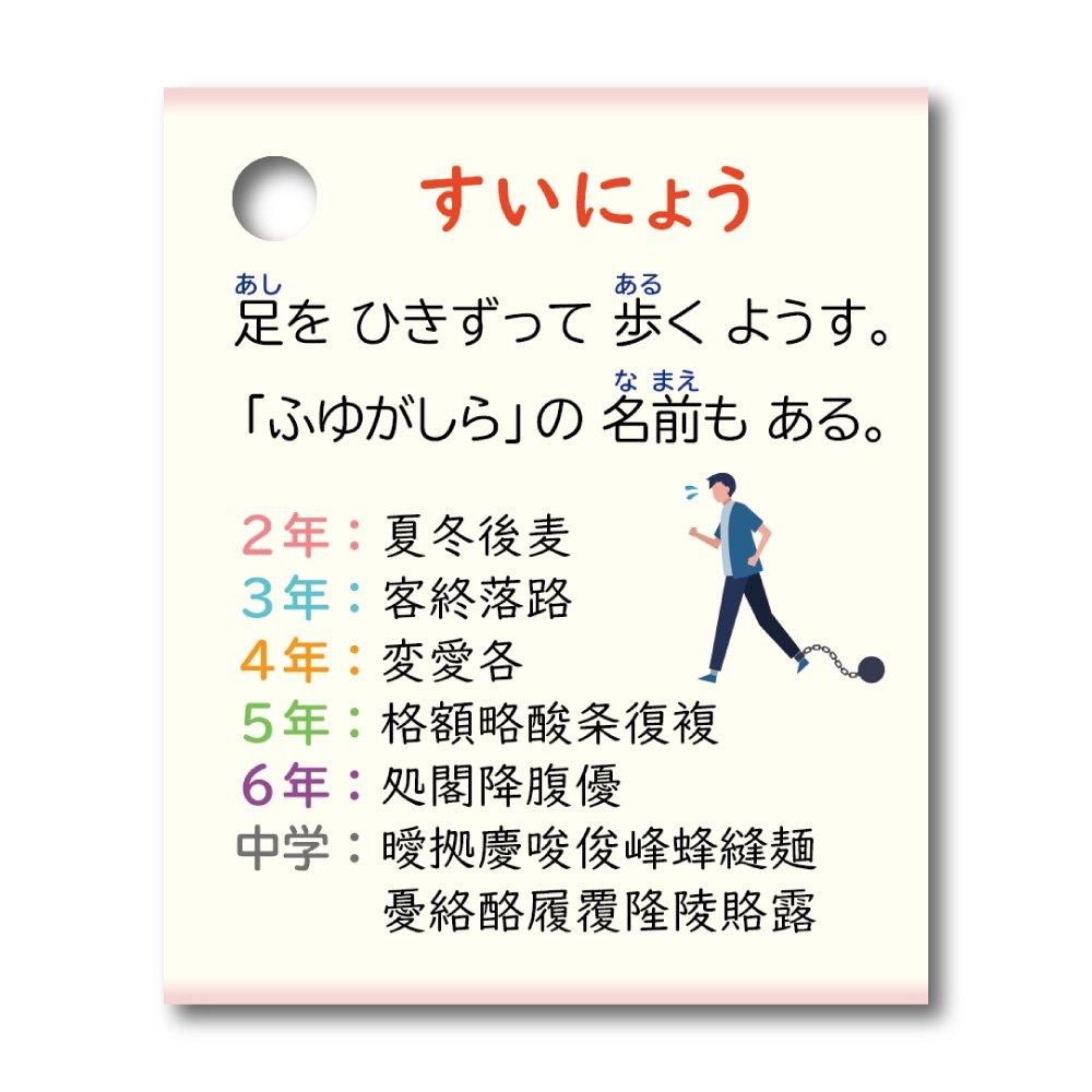4〜6年生の高学年で習う漢字の約82%(480/586字)は1〜3年生の基本漢字と部品が組み合わさって作られています。つまり、4年生以降に習う漢字に新しいカタチはほとんど登場しません。だから、高学年で漢字をおぼえられない、漢字が苦手な場合は2〜3年生の漢字カードを使って復習するのが学習を立て直す近道です。2〜3年生の漢字は組み合わせの意味もわかりやすいく、部品を組み合わせるコツをつかめば高学年で習う漢字もおぼえやすくなります。1年生の漢字は書けるケースが多いですし、ひとつひとつのパーツ(部品)は3年生までに何度も書いてきたものばかり、きっと書けるはずです。2〜3ヶ月もあれば復習できるケースが多いです。