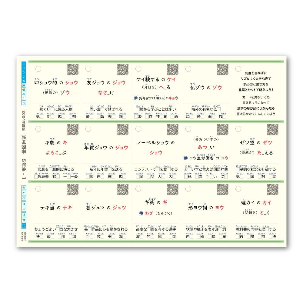 小学校5年生で習う漢字(193字)の読み書きをとなえて覚えるカード型の学習教材です。